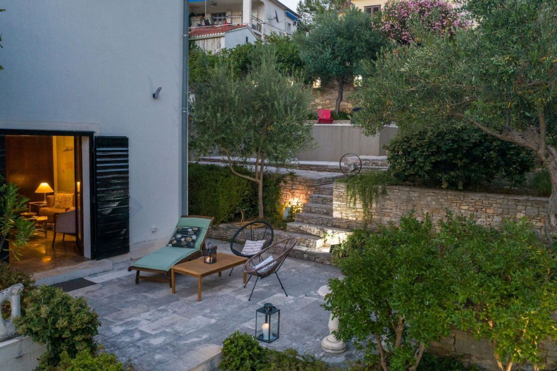 Villa Rošin idealna je kao obiteljsko utočište, pružajući, svojom lokacijom, blizinu svih najvažnijih javnih sadržaja, istodobno osiguravajući, svojim dizajnom, intimu u druženju i opuštanju. Sastoji se od glavne kuće na tri etaže, s tri spavaće sobe, dva kupatila, dodatnim zahodom, kuhinj...